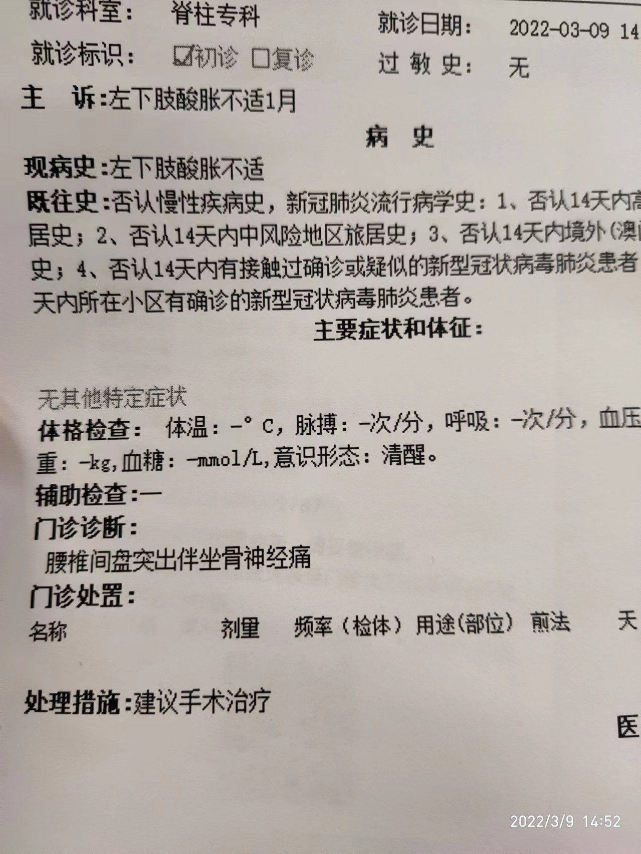 2022年春节假期期间,我一直觉得左侧腰部隐隐作疼,走一段路之后就会感到疼痛难忍,不得不停下来休息一会。我一直以为是腰肌劳损,休息几天就会好。 春节假期结束时,我背着塞得鼓鼓囊囊的背包去高铁站赶火车,可能因为背包太重,好几次我必须放下包,蹲在地上休息几分钟后,才能继续走。要命的是,我当时没有买到直达南京的票,我选择买短乘长,事后补票。这导致我必须在车上站一个小时,由于难于忍受的疼痛,这一个小时,可能是我有生以来身体上最痛苦的一个小时,车上人太多,我甚至没有办法蹲着,只能手撑别人的座椅靠背,强忍着。候车到站后,补票窗口排队补票的人也很多,那个时候我已经无法忍受了,也完全管不了别人的眼光,直接坐到了地上。和身体的痛苦相比,别人的眼光算得了什么?