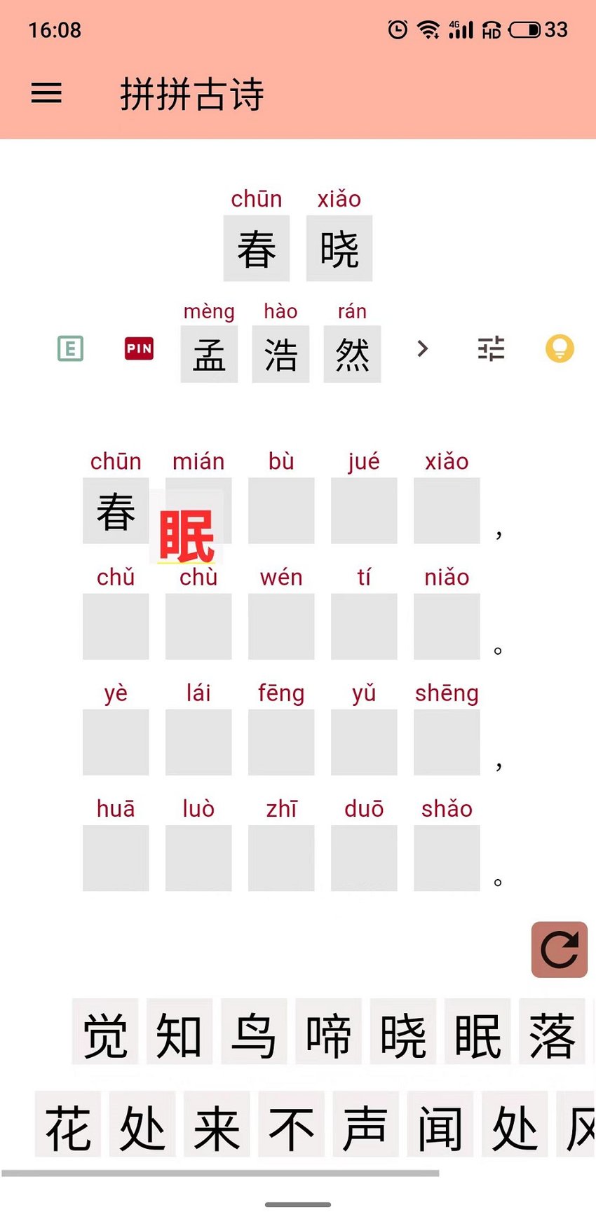 后来,我想,或许我可以把它美化一下,增加小学到高中教科书中的诗句,可以选择年级以便调整难度。于是在github上搜一下,在这个repo